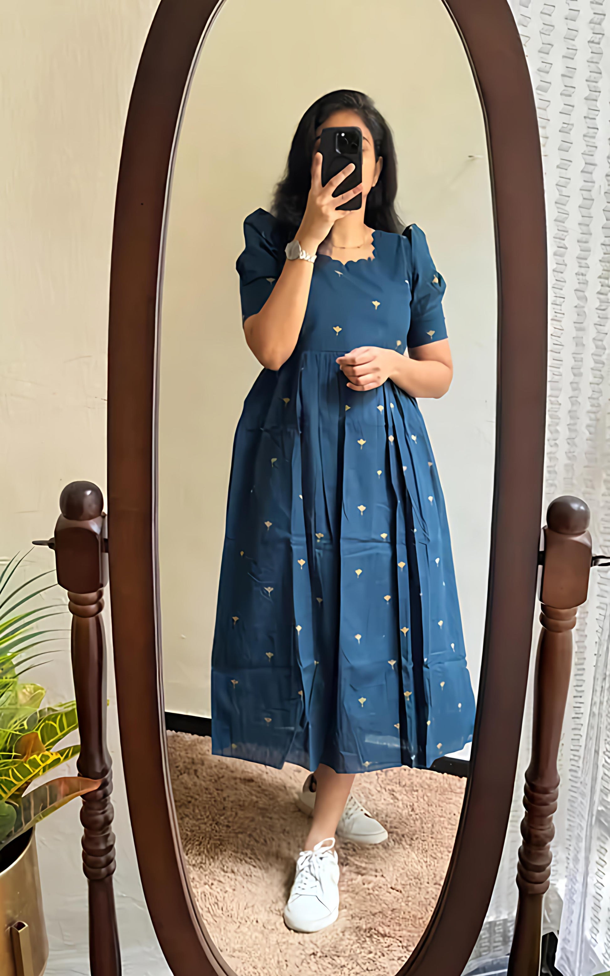 Women’s Cotton Printed Fit & Flare Midi Dress