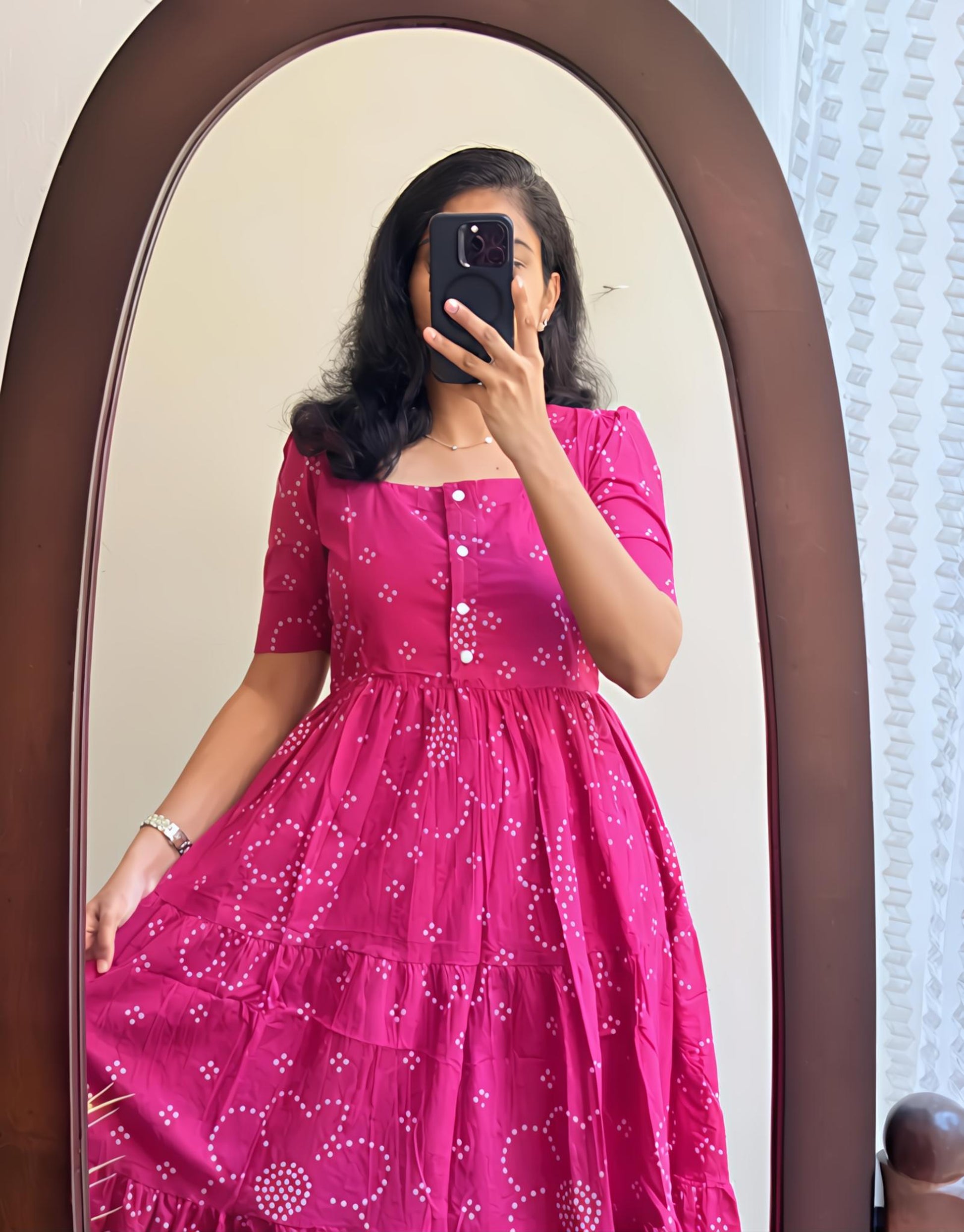 Trendy Green Floral Printed Middy Gown for Women || Stylish Half Sleeve Cotton Dress || Frock for Girls || Casual Wear Gown || Kavya Trends